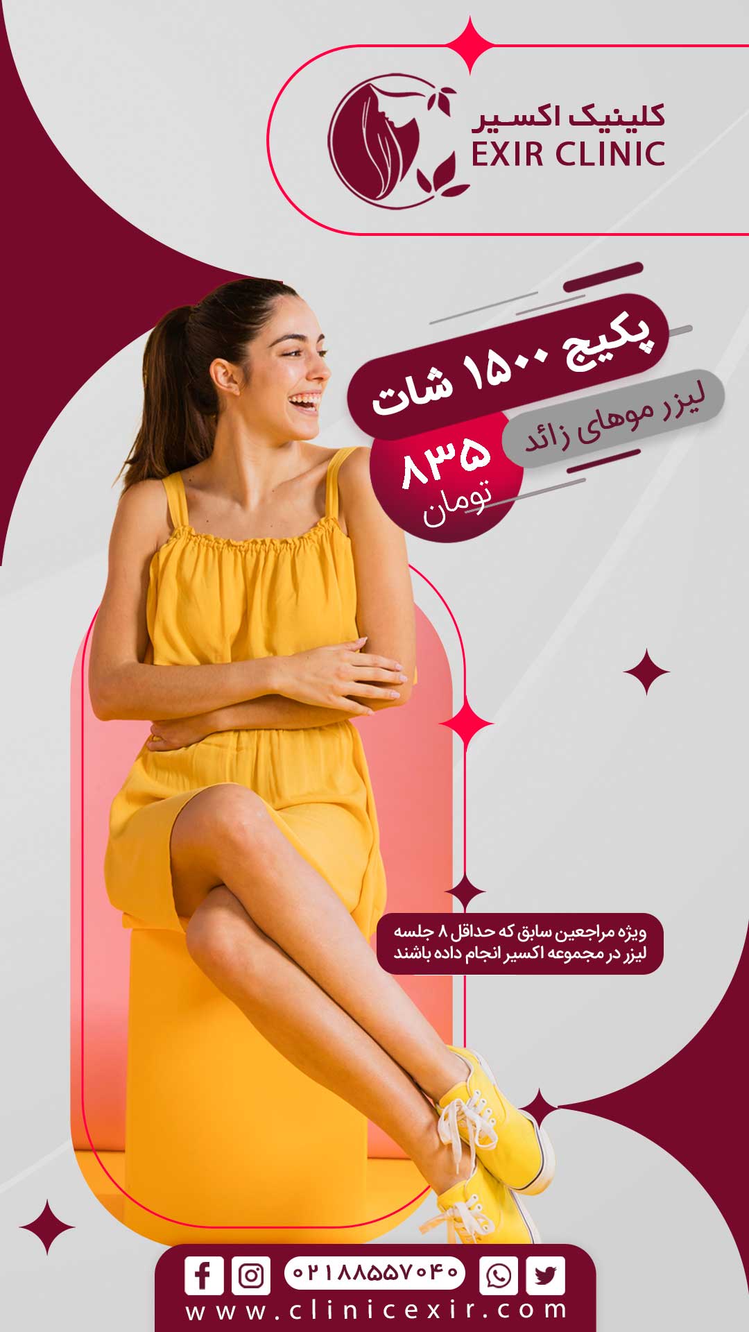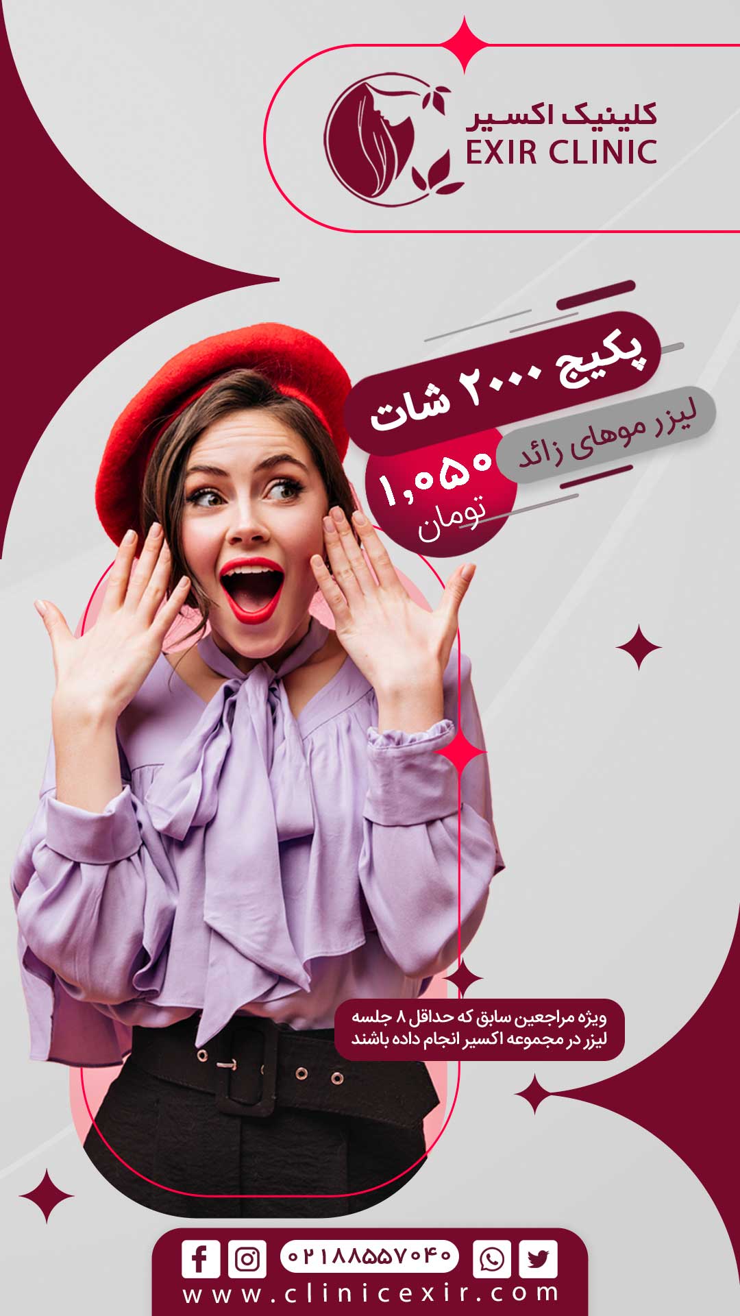 جهت مشاوره رایگان با پزشکان مجرب و رزرو نوبت مرکز تخصصی پوست و زیبایی اکسیر همین حالا با ما تماس بگیرید.️